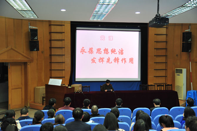 4月10日晚,校党委委员、副校长秦志强为全体党员上党课:《永葆思想纯洁  发挥先锋作用》。