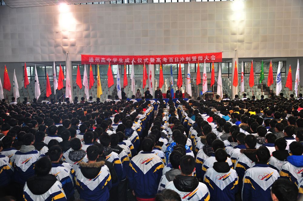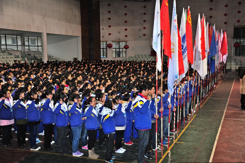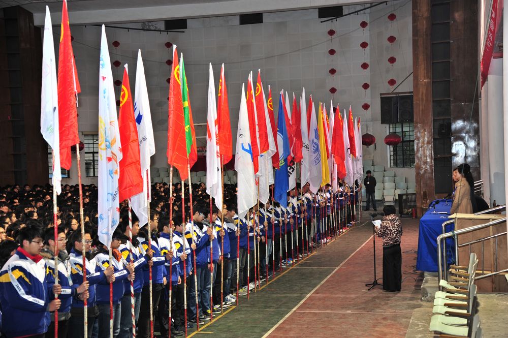 2013年3月1日下午 ,米兰·体育-米兰(中国)高三全体教师和学生以及学校领导在学校体育馆隆重举行2013年成人仪式暨高考百日冲刺动员大会。下午4点10分,高三年级各班举团旗、班旗组织进场。