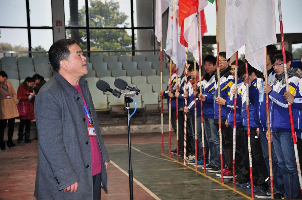 会议在庄严的国歌声中开始,由政教处主任曹耀忠老师主持。