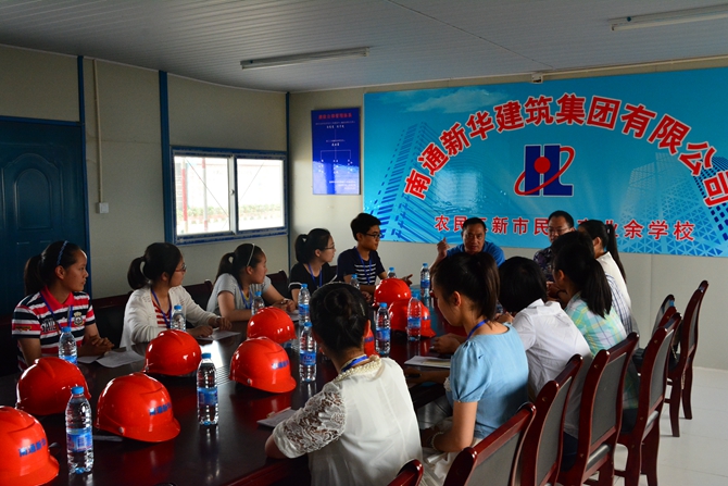 5月30日下午,在校团委书记巫灿烨老师的带领下,高一年级的部分学生干部参观了施工中的通州区高标准高中部通州高级中学新校区,并分组对设计院戴院长,姜副院长,施工单位南通新华公司工程负责人刘经理,以及通州高级中学副校长许斌做了采访。