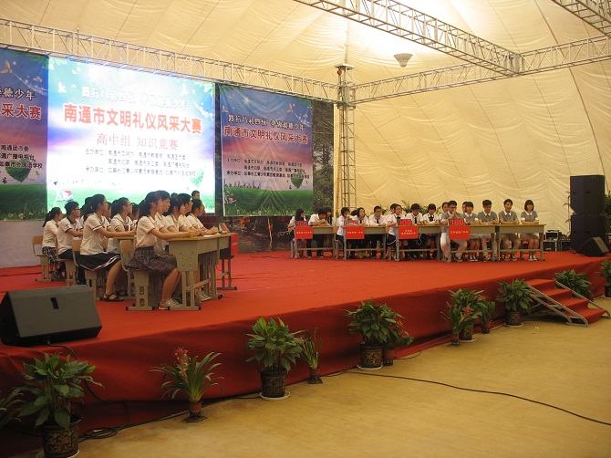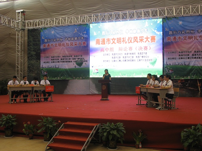 参赛团队的全体人员利用周末及暑假中的部分时间,团结协作,创造性地开展工作,做了认真而充分的准备。在与江苏省南通中学、江苏省南通第一中学、江苏省启东中学、江苏省海门中学、江苏省如东高级中学、江苏省如皋第一中学、海安县立发中学等学校的交流比赛中,我校的微视频《美于言 礼于行 秀于心》获微视频展示第一名,我校学生在辩论赛中荣获亚军,其中,张斌禄同学获得辩论赛最佳辩手。