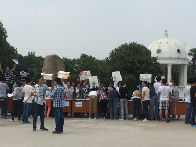 9月27日中午,由校学生社团联合会主席团发起,各学生社团社长具体负责,在之远楼前空地进行了面向高一年级的集中招新活动。