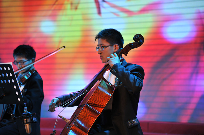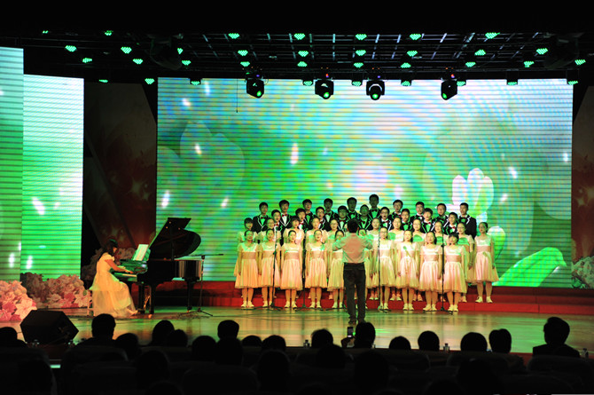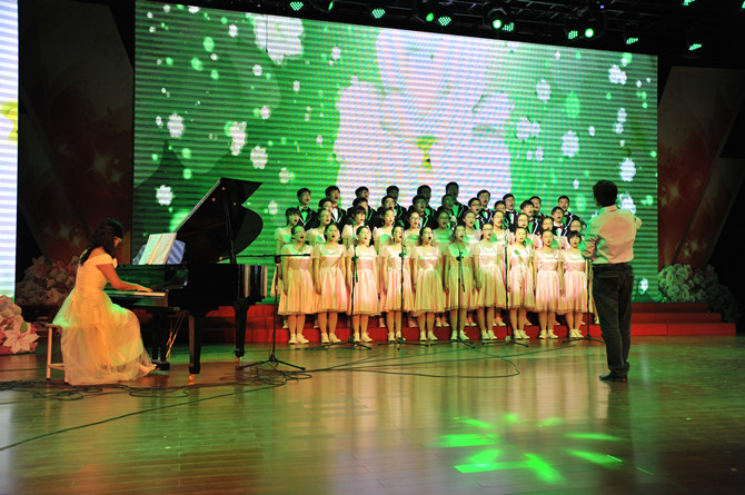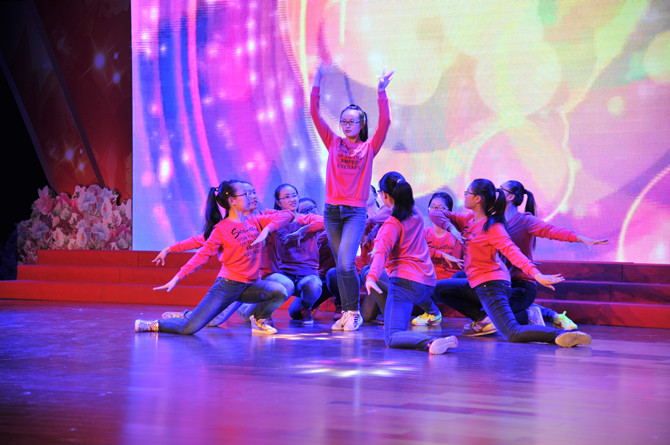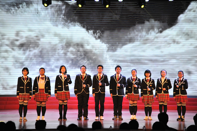 演出在开场舞蹈的欢快节奏中开始,1个小时的时间里,我们为评委和来自实验小学六年级的小朋友们展现了高中生的阳光与活力。女声小合唱婉转动听,配乐朗诵饱含爱国深情,自编自导的话剧既笑点频出又富有内涵,弦乐四重奏展现了很高的艺术水准,最后的大合唱铿锵有力。
