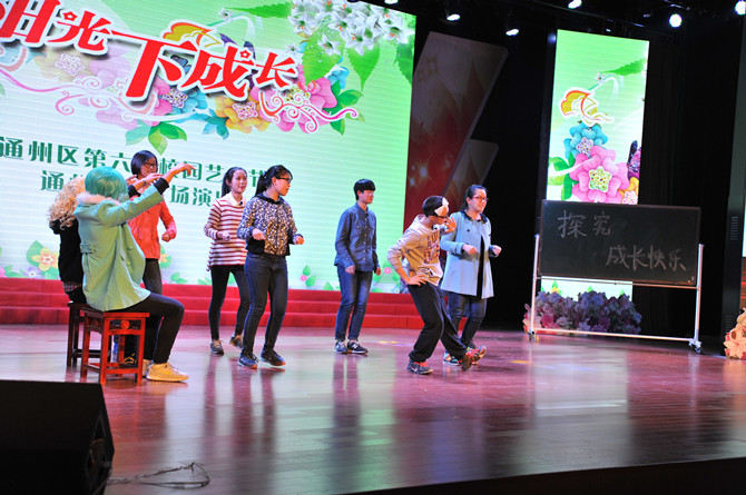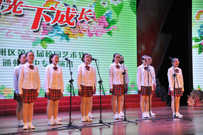 4月20日下午,在通州区实验小学的报告厅内,我校师生为区中小学生校园艺术节献上了一台有品有位、有质有量的专场演出。