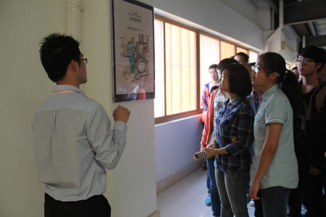 随后,同学们在会议室认真聆听了工作人员的讲解,从葡萄酒的历史到葡萄酒的分类,从酿酒葡萄的品种到酒杯的选择,无不使同学们大开眼界。热热闹闹的自由提问环节,同学们积极参与其中。政教处主任曹耀忠老师将“社会实践活动基地”的铜牌赠与了“圣果”公司。