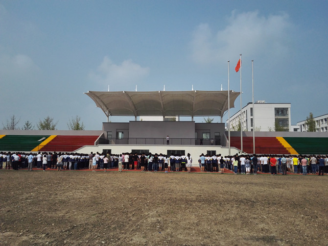 今天的升旗仪式,不同以往,相信大家一定给予了充分的期待——因为,这猎猎红旗映照下的校园,是如此的崭新靓丽!事实上,这种期待,从各位踏进新校园的第一步开始,已经延伸到了教室、办公室,乃至那刚刚铺砌的地砖石块!