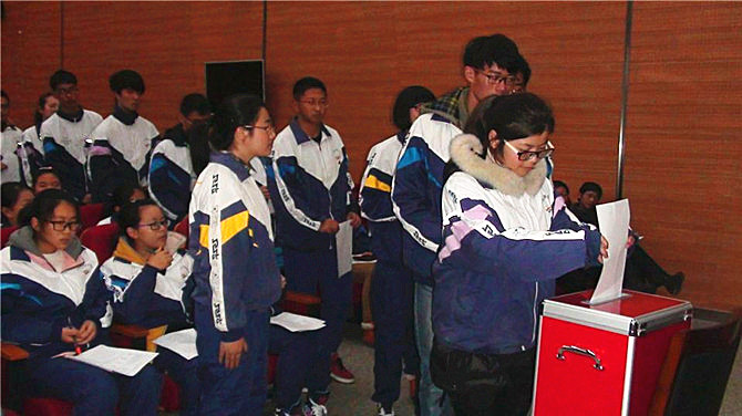 会上,代表们听取了政教处副主任、校团委书记巫灿烨老师代表团委会做的年度工作报告,第十九届学生会副主席陈芊芊同学的学生会工作报告。随后,团委增补委员候选人、学生会委员候选人依照姓氏笔画排序依次进行了精彩的竞职演说,他们激情洋溢地展示了对胜任学生自我管理工作的自信。代表们一边听取竞职演说,一边认真阅读代表手册上候选人的简介,然后慎重填图选票,最终通过差额选举产生了第十七届团委增补委员四名、第二十届学生会委员14名。在《光荣啊,中国共青团》的歌声中,两个大会圆满结束。大会在执行流程上规范、公平、完整,对与会代表而言,是一次参与政治生活的真实体验。