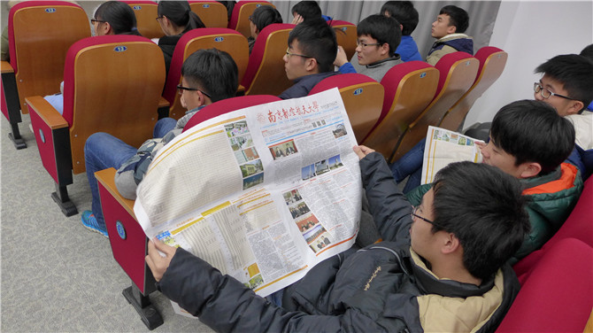 我校高三年级每一名学生都可以自主选择一个会场聆听宣讲,并与校友们进行互动交流。其中,南京大学、上海财经大学等分会场内不仅座无虚席,还有不少同学站着听到结束。