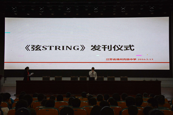 5月13日下午,我校学生社团杂志社在涵礼堂举行《弦String》发刊仪式,校学生会副主席、本刊主编高二20班邢逸旻同学主持活动,她就本刊的创作历程及参与创作的人员做了简要的介绍,同学们依次上台分享了他们的工作历程。在分享中,在场同学感受到了这本杂志创作背后的艰辛与不易,台下多次掌声雷动。在互动环节,同学们就本杂志提了一些问题,涉及到杂志经费来源,作者创作灵感等,《弦String》的工作人员就这些问题做了详细的解答。校团委副书记金丹丹老师在发言中肯定了这是我们积极开展社团活动的成果,并鼓励同学们要有创新意识,还要有坚持到底、持之以恒的精神,金老师还就合理处理学习与社团的关系给予了指导。