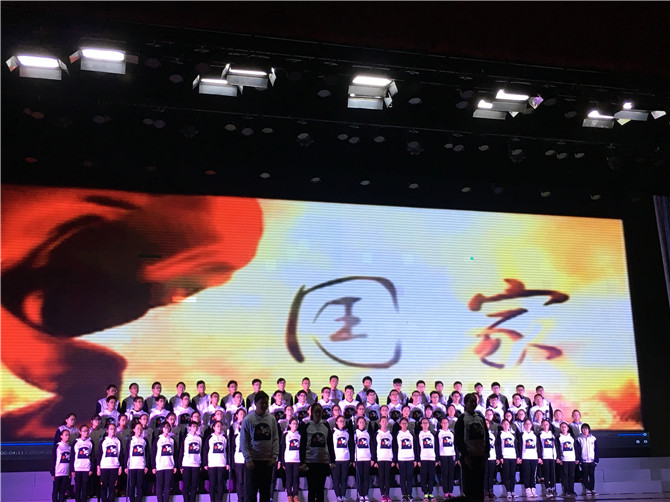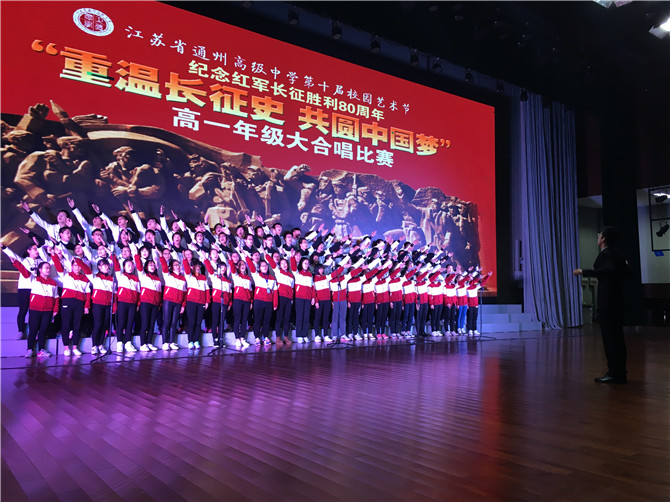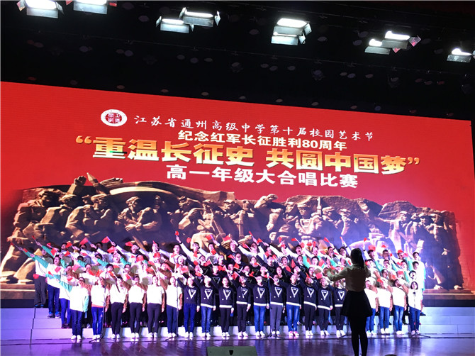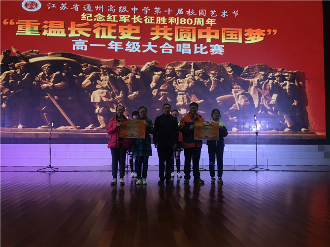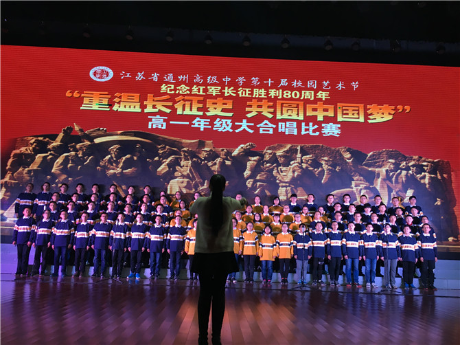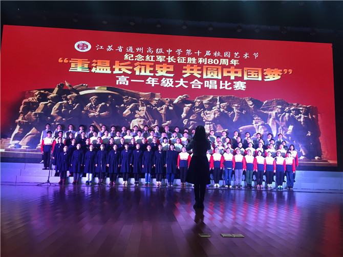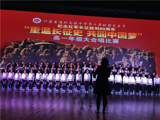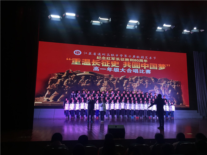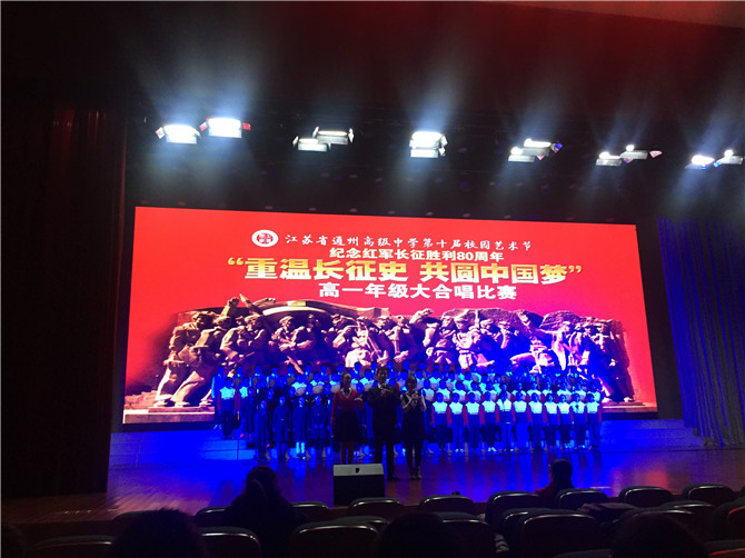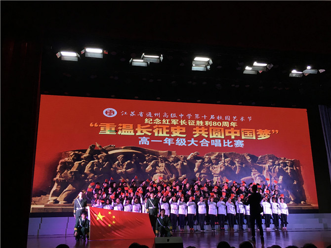 11月26日(周六)晚,以“重温长征史 共圆中国梦” 纪念红军长征胜利80周年为主题的高一年级大合唱比赛在我校涵礼堂隆重举行。