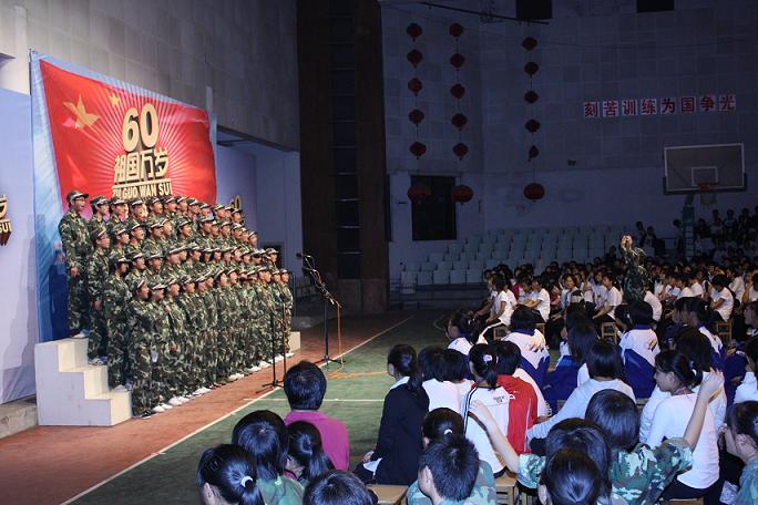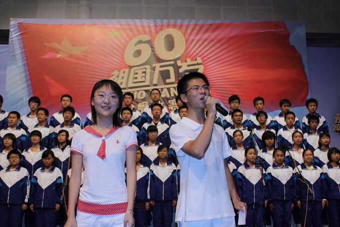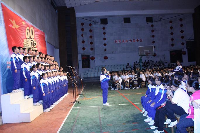 9月25日晚,高一年级全体师生聚集在学校体育馆举行纪念建国60周年系列活动之“祖国万岁”班级合唱比赛。赛前,各班同学付出了极大的热情,结合主题选择参赛曲目,请艺体组任晓洪老师进行专业指导,利用课余时间积极排练。尽管高一新生入校仅仅一个月的时间,但在此次合唱比赛中同学们全情投入,体现了很强的班级凝聚力,展示了通高学子的风采。本次比赛评委由学校领导、校外专业艺术老师、校园十佳歌手担任,现场打分、亮分,体现了公平公正原则。校党委副书记、副校长曹光明老师现场宣布比赛结果,高度肯定了同学们的演出,并给获奖班级颁发了获奖证书。