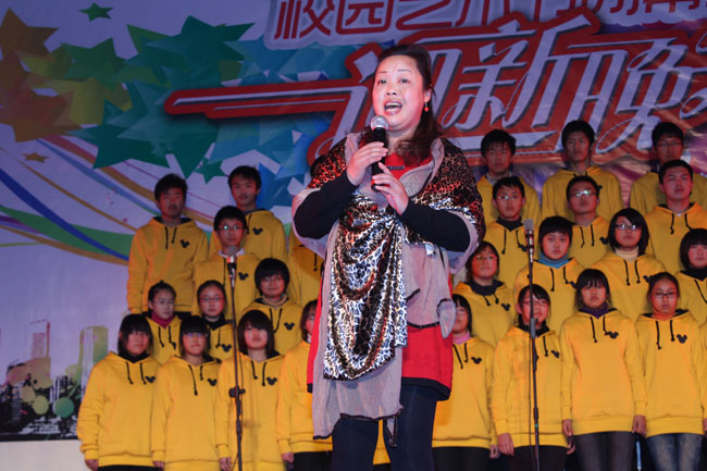 教师合唱团演唱《中国进行曲》、《踏浪》,领唱:周志军