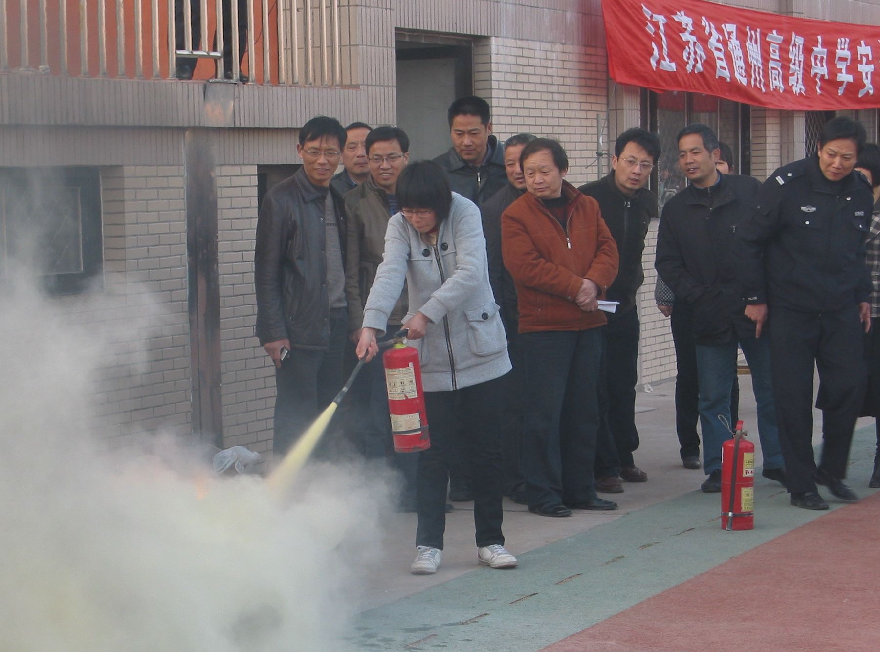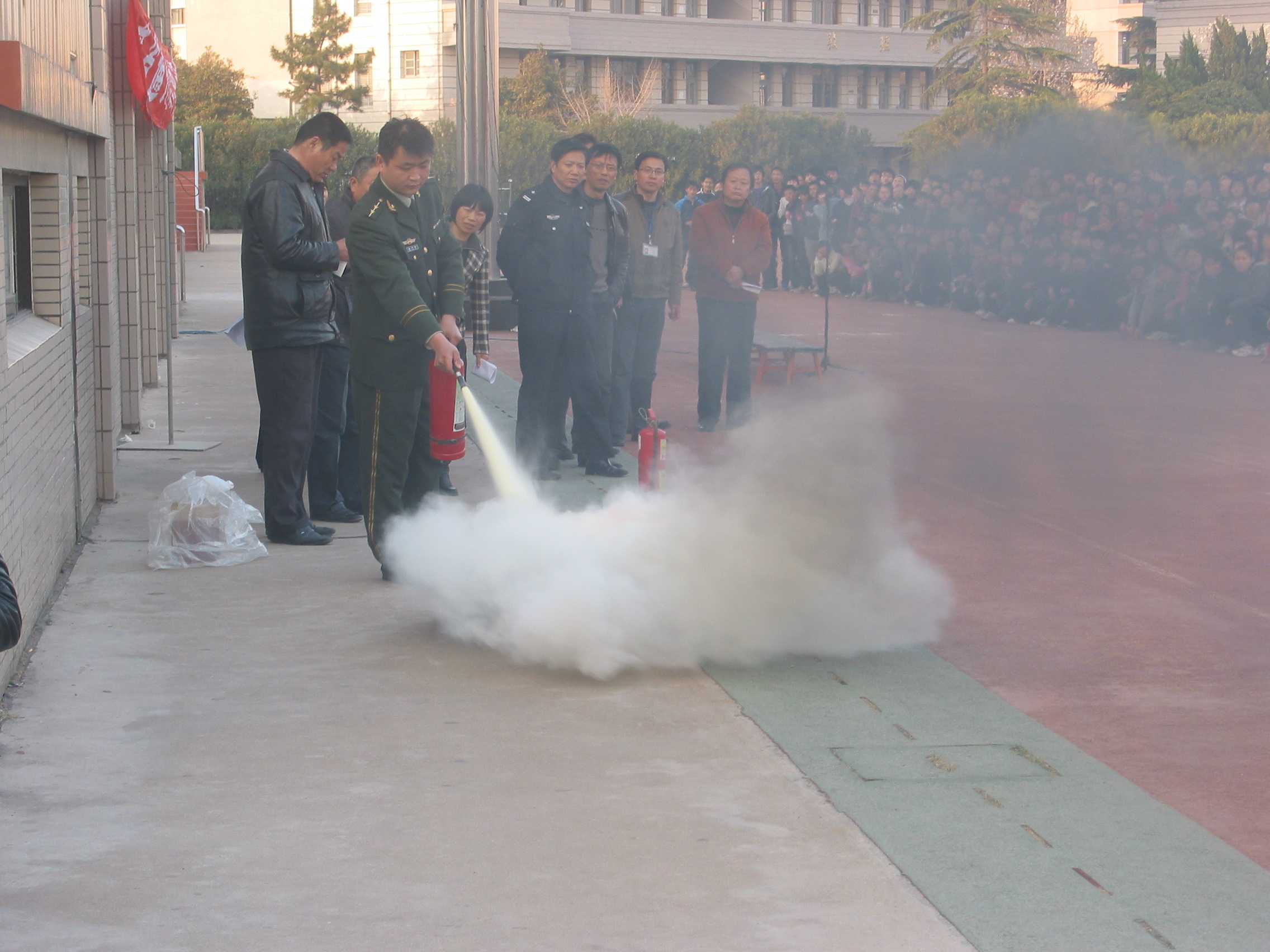 区消防中队盛指导员向师生们进行灭火示范(杨文鹏摄)