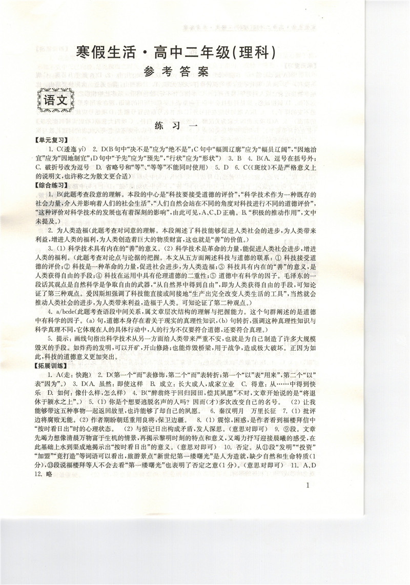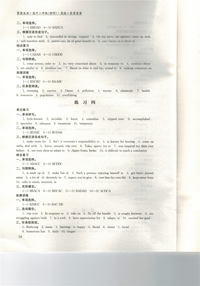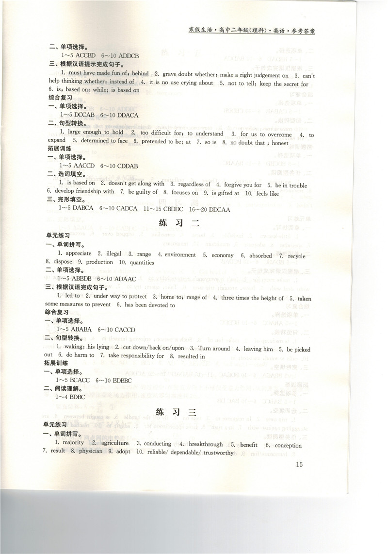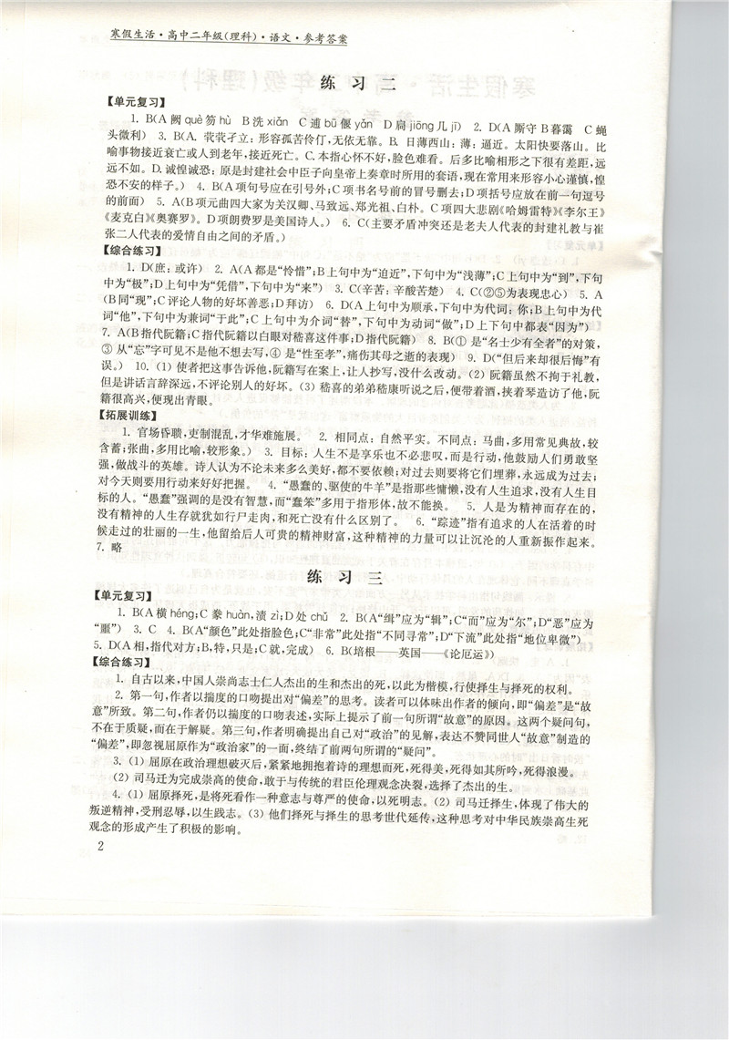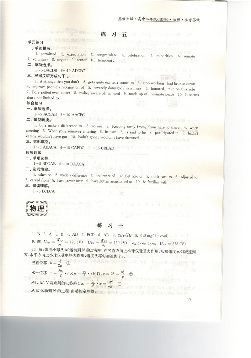 高二《寒假生活》答案