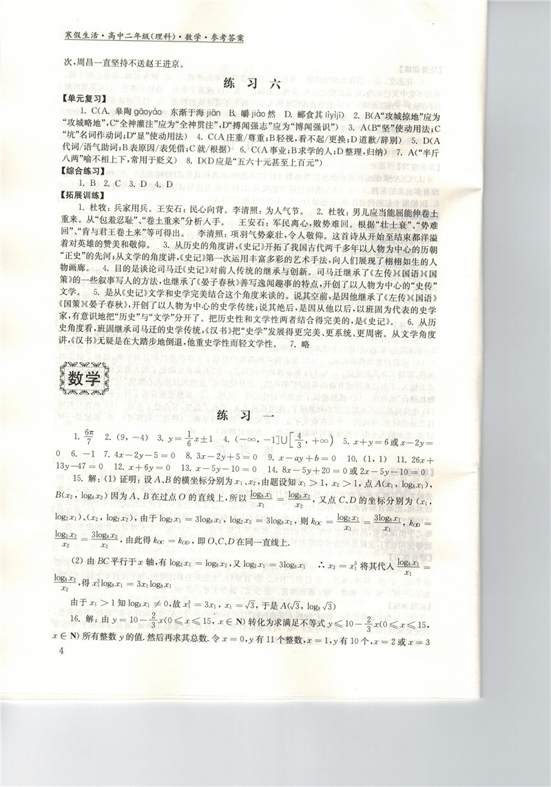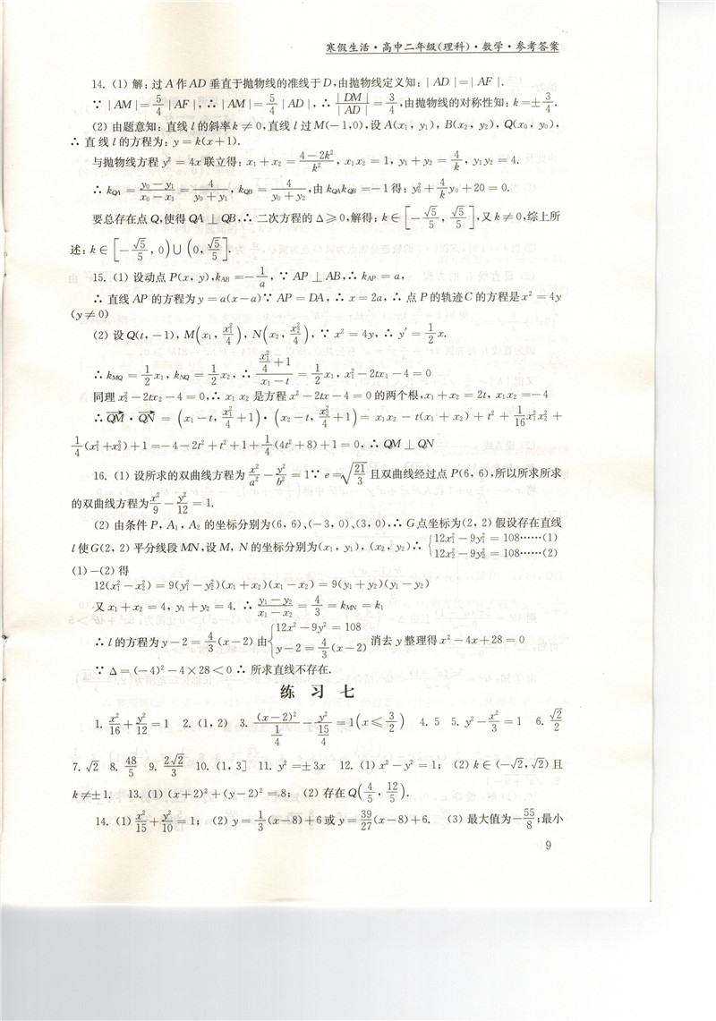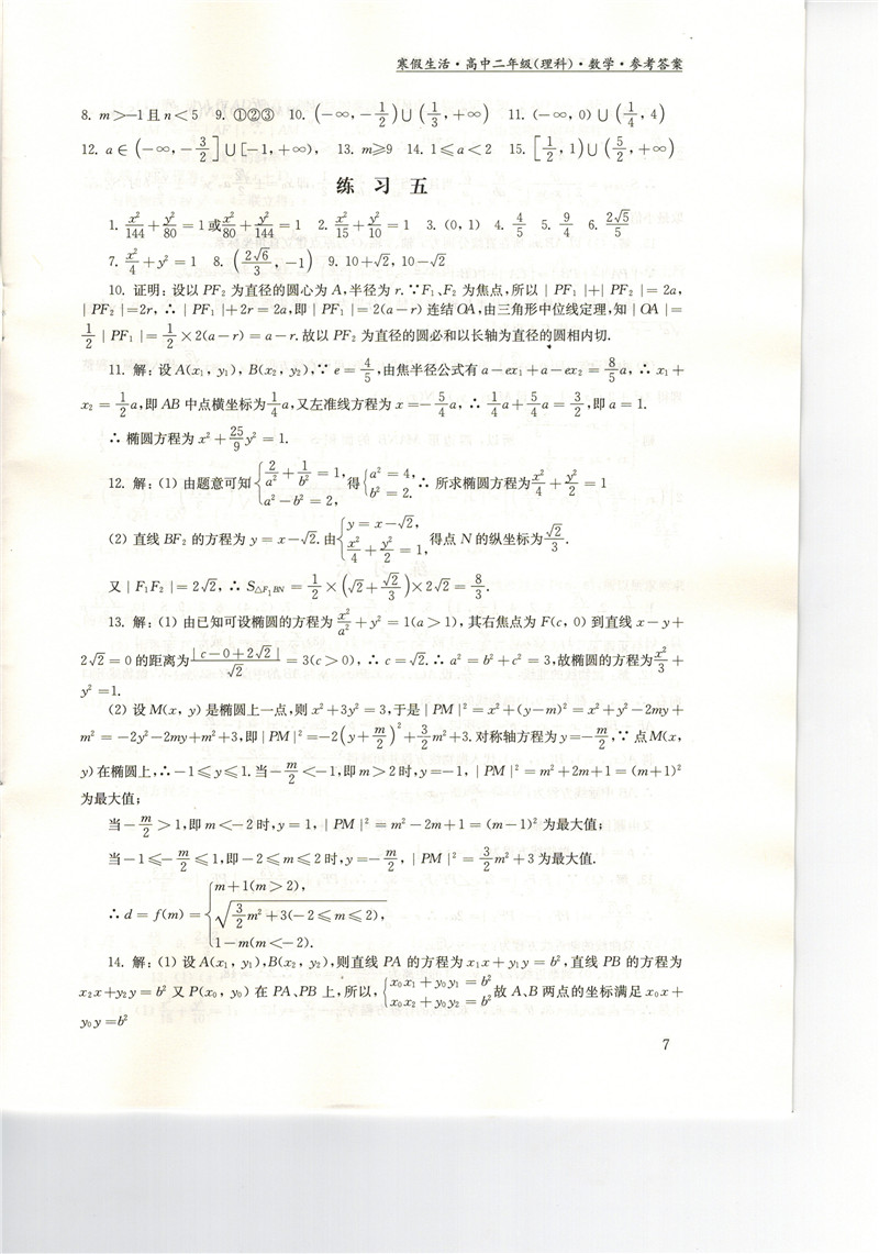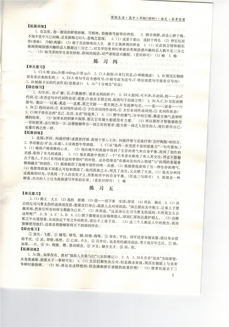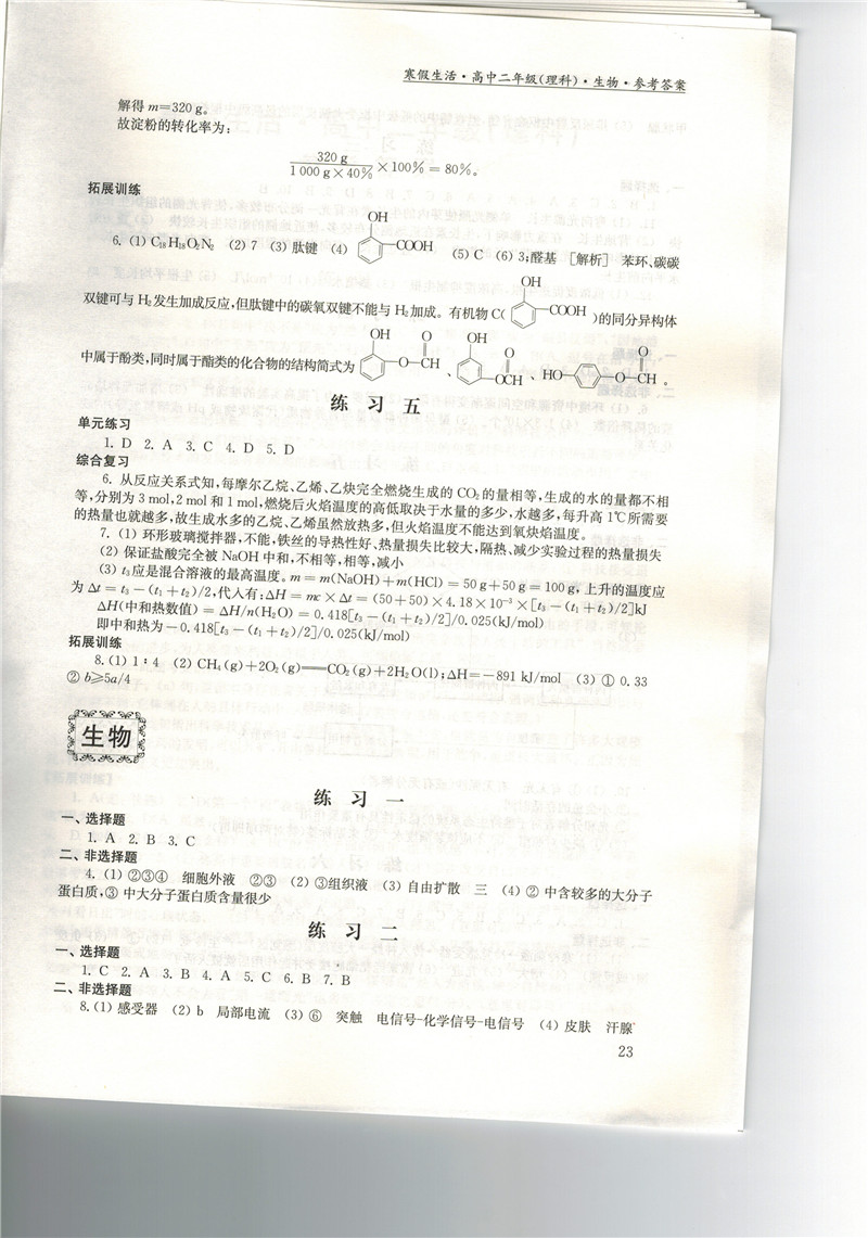 高二《寒假生活》答案