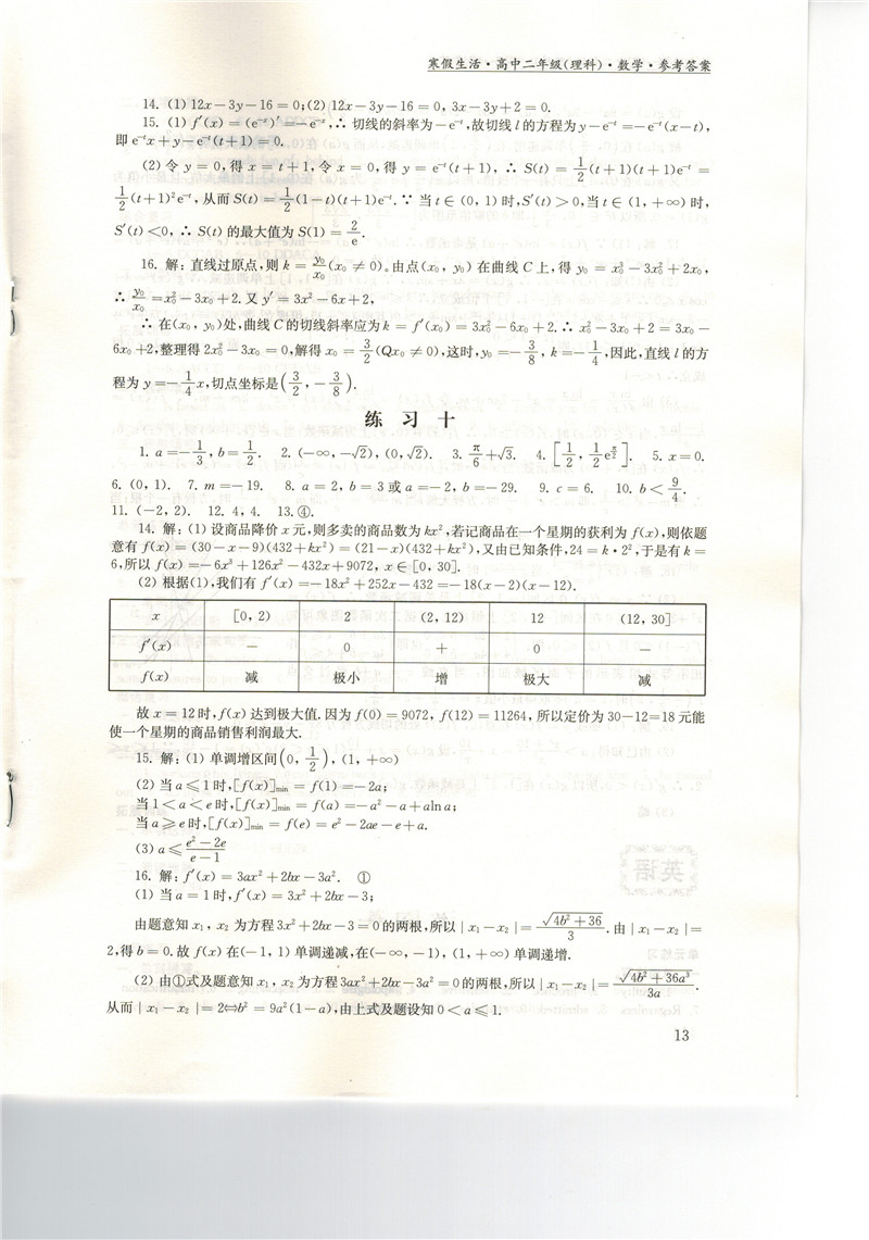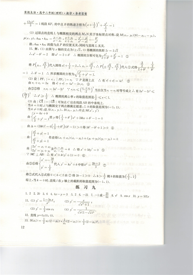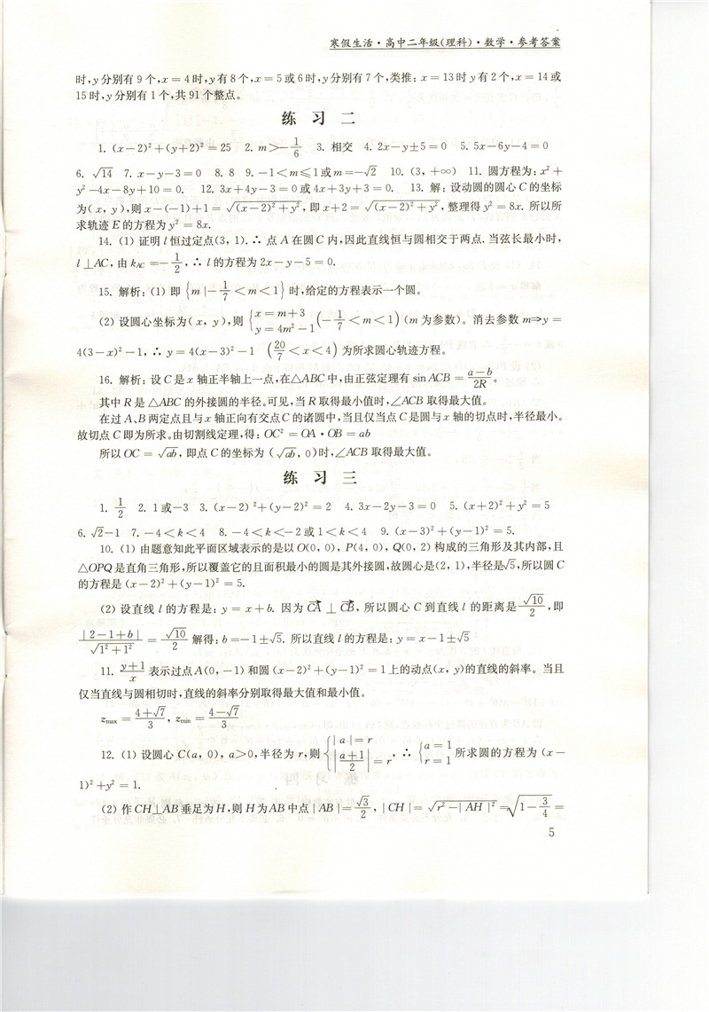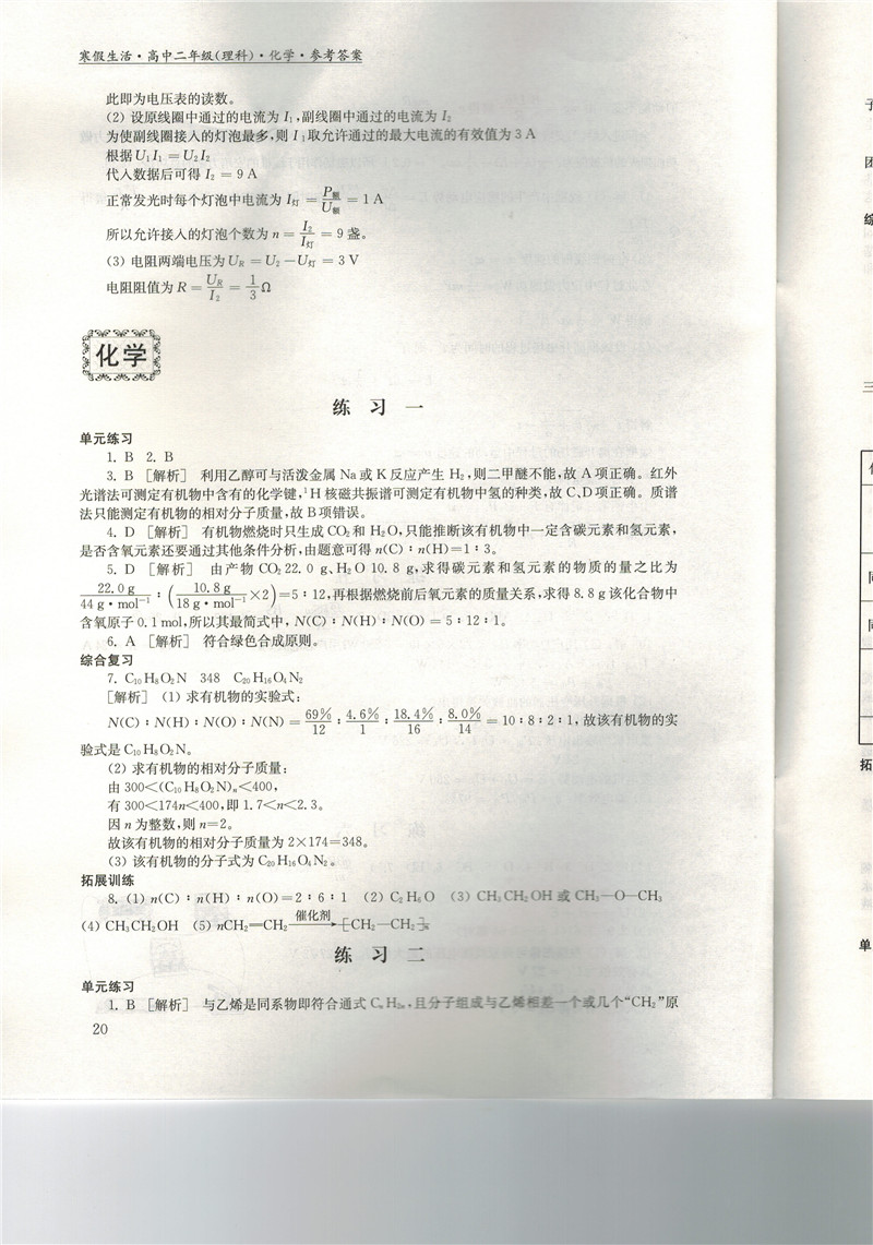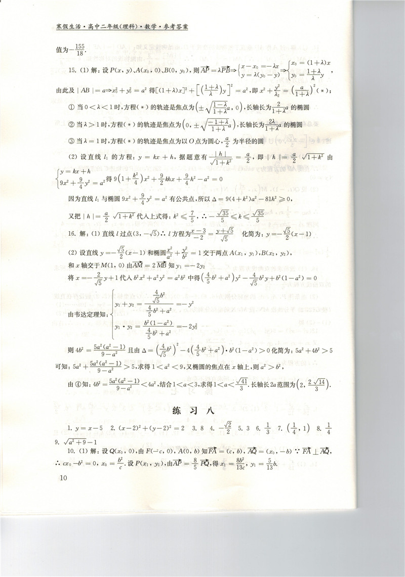 高二《寒假生活》答案