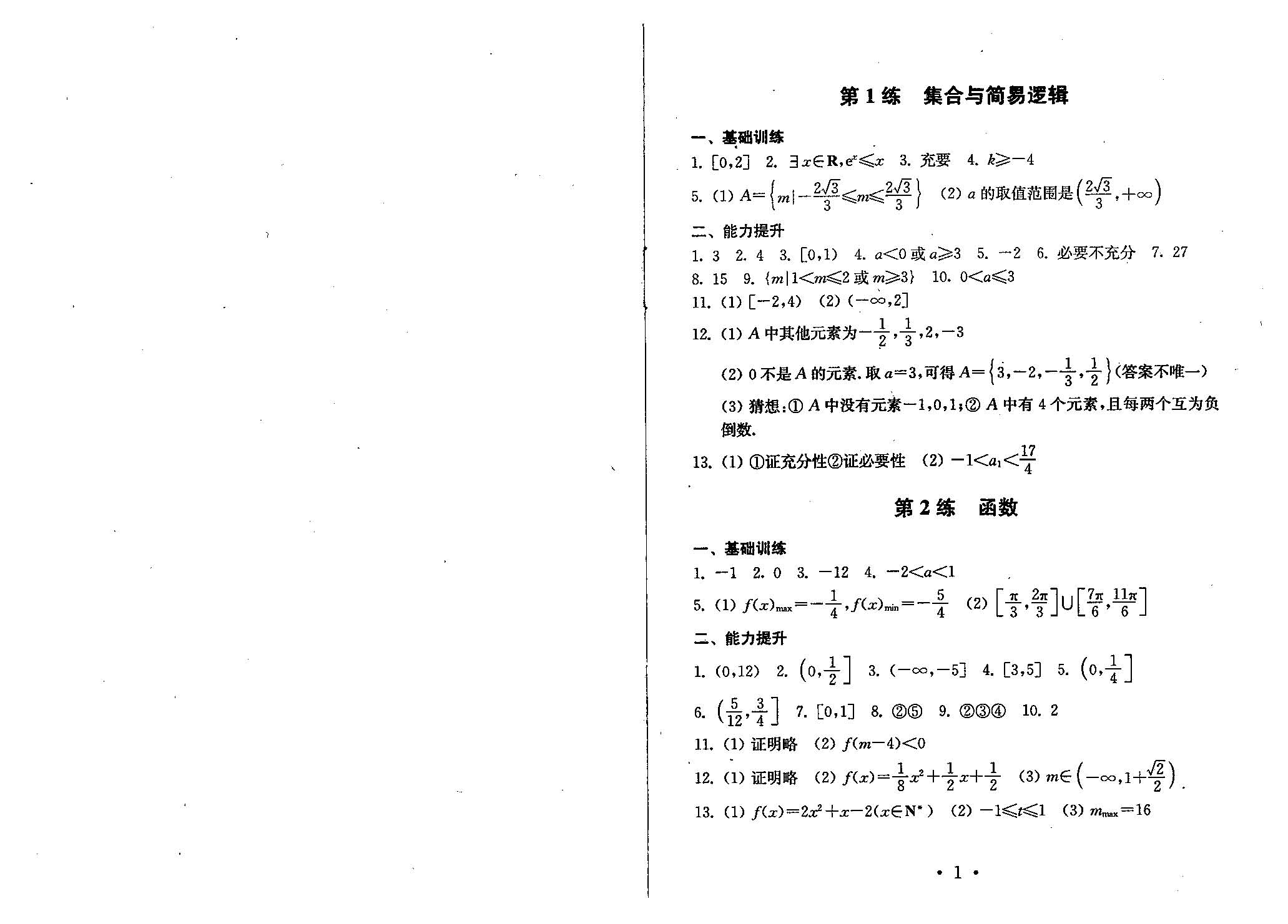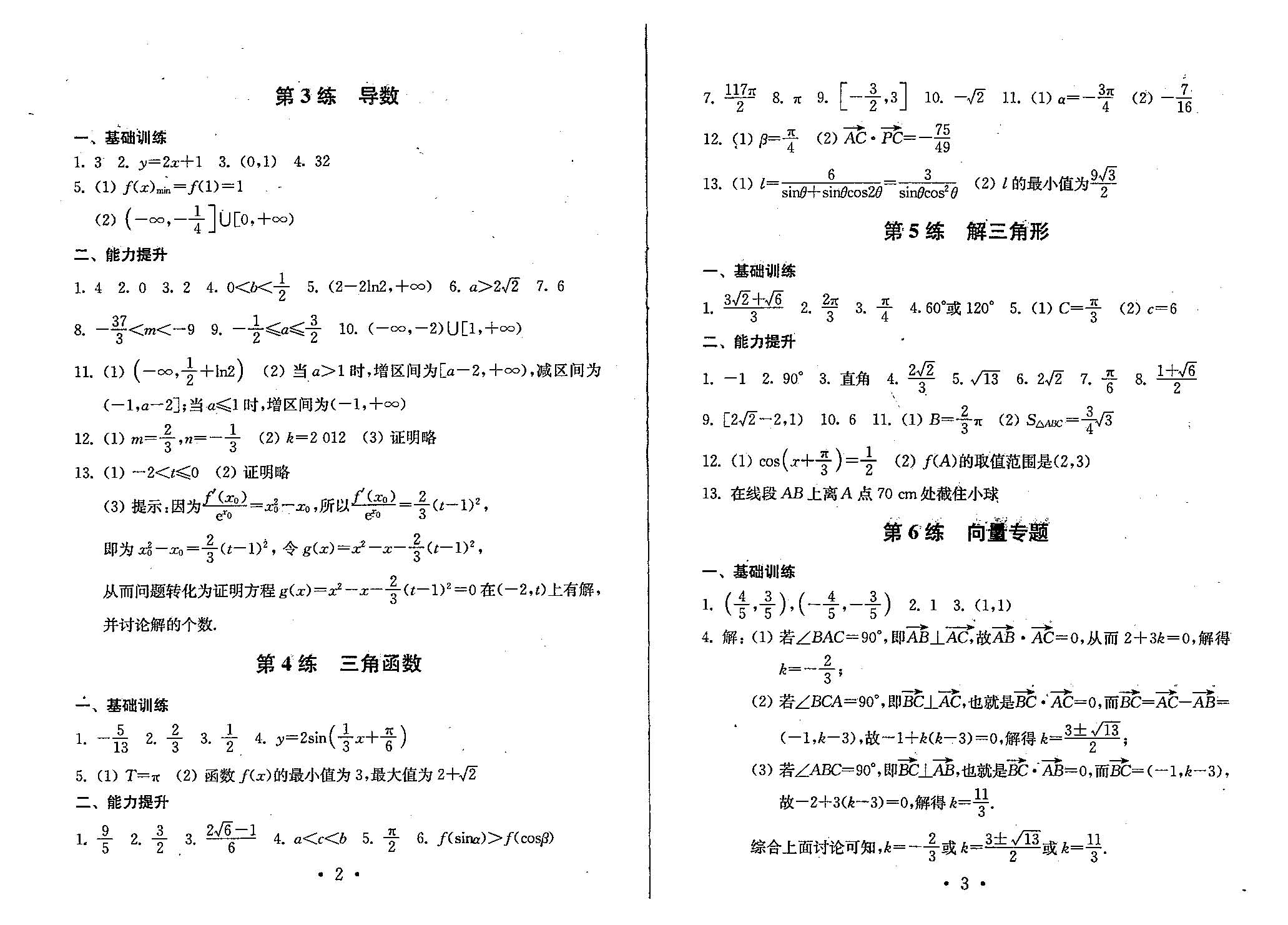 高三数学寒假作业答案