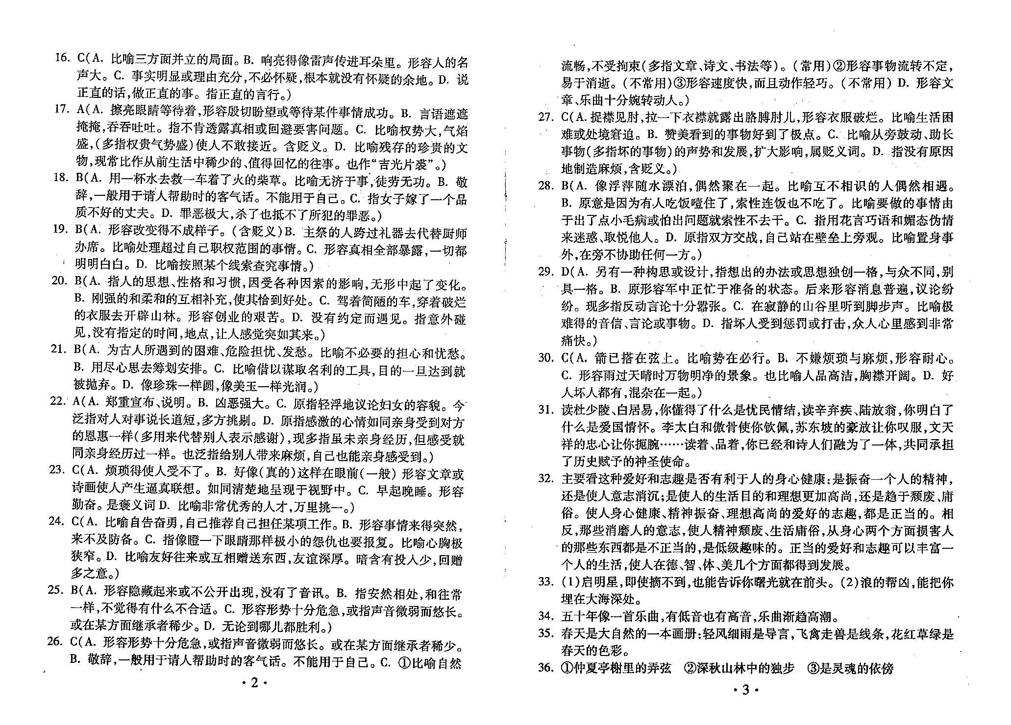 高三语文寒假作业答案
