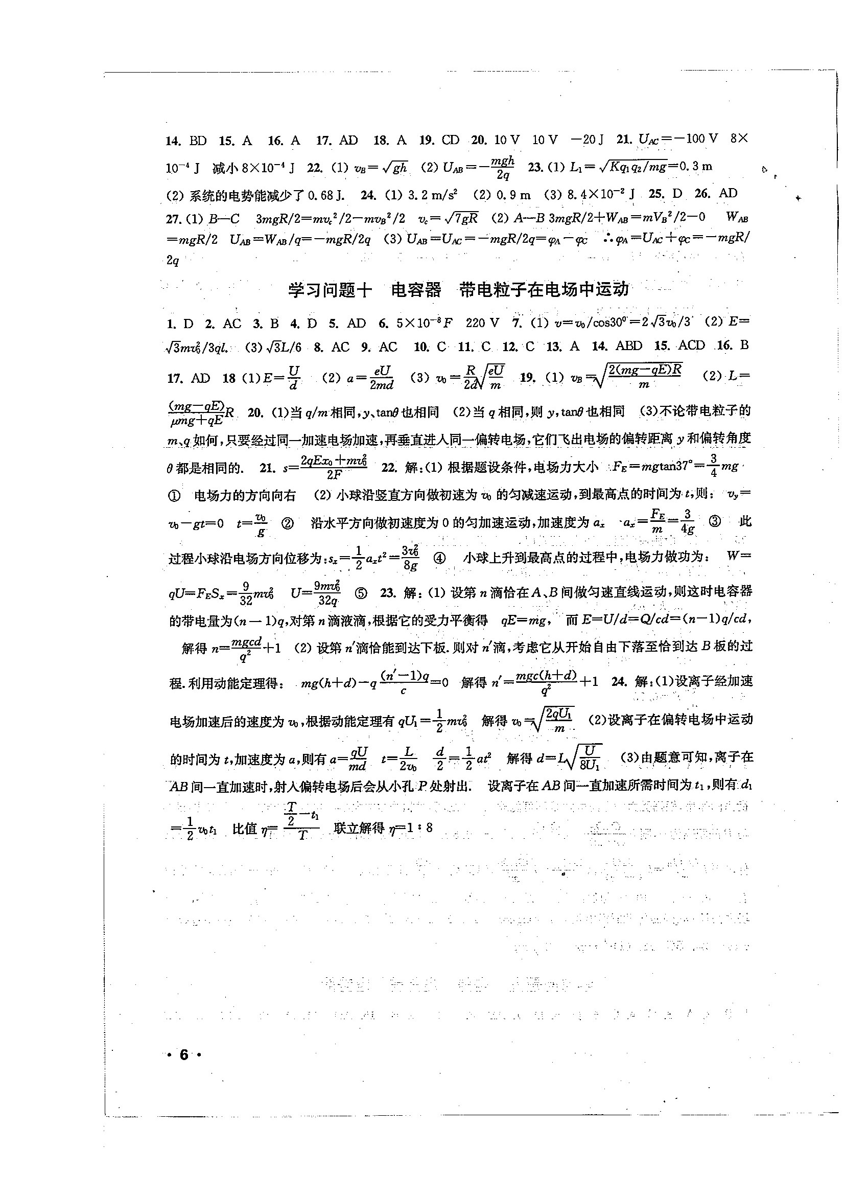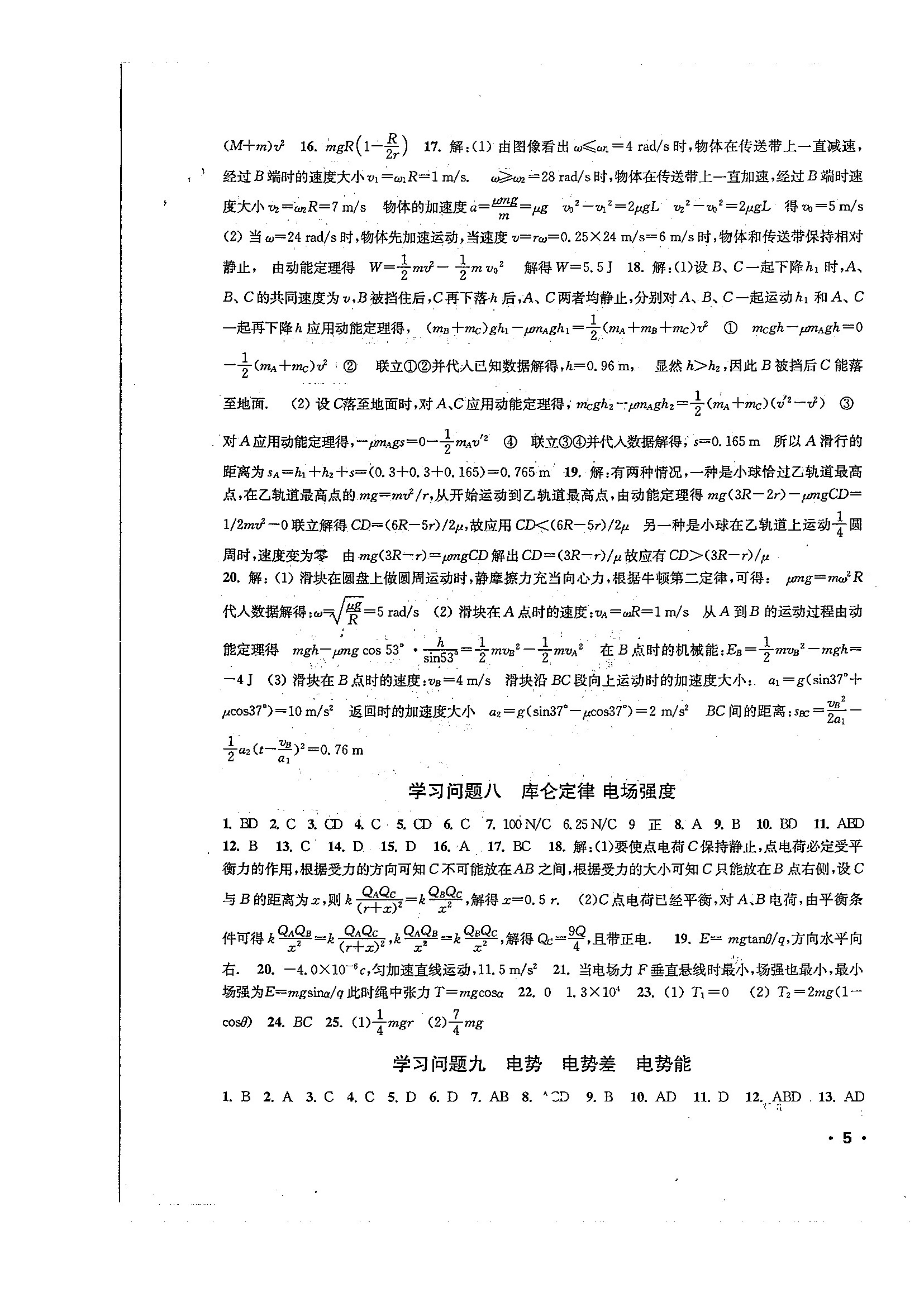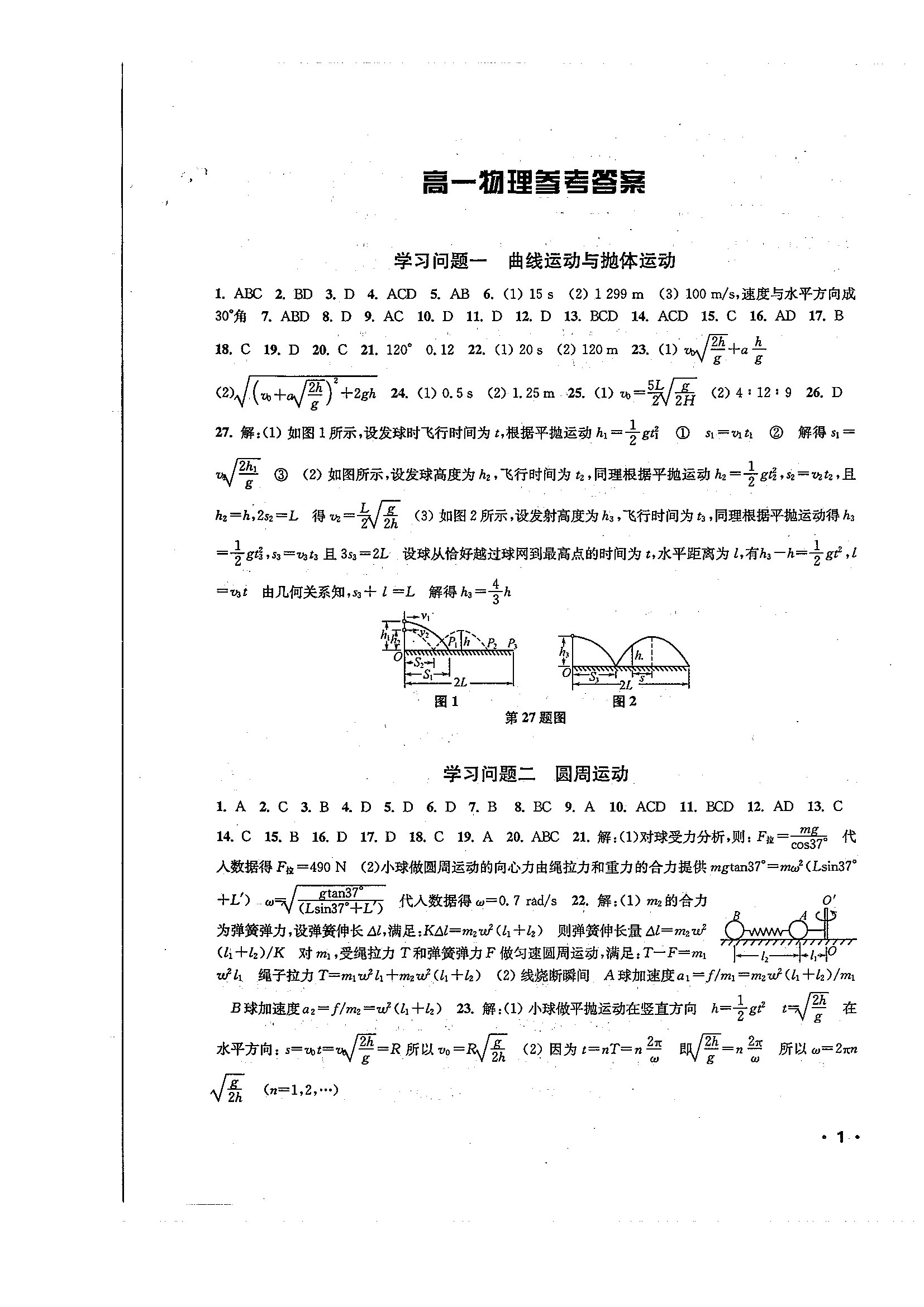 高一物理暑期作业参考答案