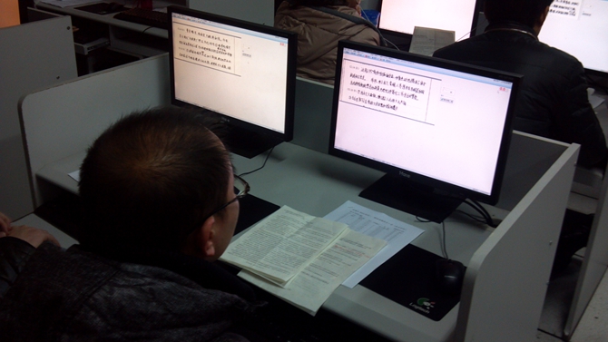 南通市2014届高三第一次调研测试在本月16、17日举行,17、18日全市统一进行网上阅卷,我校承担语文和英语两学科的阅卷机务工作。为确保首次全市统阅工作顺利进行,我们在上学期末就对机房设备进行了升级维护,新学期一开学,又进行了网络互联互通和系统压力测试。