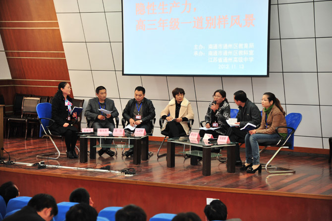 活动邀请了南通市优秀班主任、如皋中学教师袁晓琳作了“用完整的生命做‘老班’”专题讲座。通州高级中学教师侯卫东、西亭高级中学教师张莉娟、平潮高级中学教师吴军分别作了“做点‘无用’之事”、“做最好的自己”、“追求更好的教育”主题发言。通州高级中学张丽萍、蔡志红等6名老师围绕“隐性生产力,高三年级一道别样风景”这一主题开展了讨论交流。