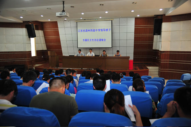 8月5日,学校召开领导班子专题民主生活会情况通报会。出席会议的有离退休老班干部代表、学校中层以上干部、教研组长、年级组长、备课组长、职工组长、民主党派人士、各级人大代表、政协委员以及部分教职工代表100余人。会议由校长季仲平主持,党委书记曹光明通报了学校领导班子专题民主生活会的情况,市委督导组刘张华副组长、尹红华同志参加了会议,刘张华同志作了重要讲话。会后,与会同志对学校领导班子及班子成员的对照检查情况进行了民主测评。