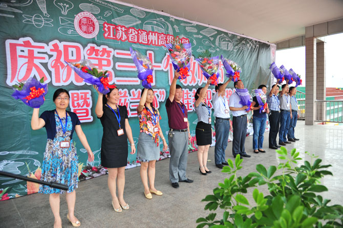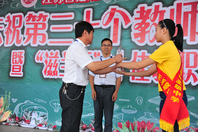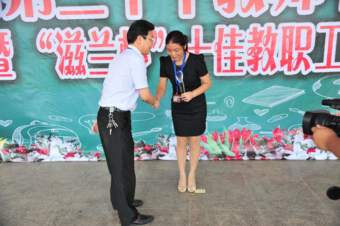 9月10日下午,全体教职员工及全校学生在操场集中,召开庆祝大会暨首届“滋兰杯”十佳教职工表彰大会。整个活动简朴而隆重,首先对十佳教职工进行了事迹宣读和颁奖,精彩的文艺表演穿插其中;随后季仲平校长作了重要讲话,他希望全体教职工向优秀学习,努力使教师节成为盛大的精神节日,增强立德树人、教书育人的荣誉感和责任感,带着教育的远见、智慧和视野以更大的热情投入工作;最后进行的教师集体宣誓,将整个庆祝活动推向了高潮。