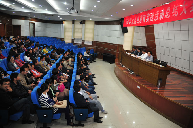 最后,季仲平校长作了总结发言,他强调群众路线教育实践活动集中开展阶段的结束,意味着对群众路线的实践进入到了一个新的阶段,学校全体党员教师、党员干部要按照习近平总书记“贯彻群众路线没有休止符,作风建设永远在路上”的指示,按照中央和省市委有关作风建设的新要求,在今后的工作实践中不断巩固和扩大教育实践活动成果。季校长指出,作为基层党委组织,贯彻落实群众路线的真谛,在于党员领导要时刻接受群众的监督,经得起纪检部门的考察,防止权力滥用和责任萎缩;在于时刻警惕“四风”问题,摒弃群众厌恶之举,回归群众心态,响应群众要求,满足群众所需,与广大群众打成一片;在于不断提高工作执行力,要在政策讲服从,工作求实效,责任敢担当,利益顾大局等方面体现党员先进性。季校长概括指出,学校开展“实践活动”的最终目的,在于切实提高教育教学质量,在育人成果上体现群众路线的现实意义,学校要在效益和特色上做足文章,将“群众满意的教育”置于最高目标,为两个文明建设提供智力支撑。