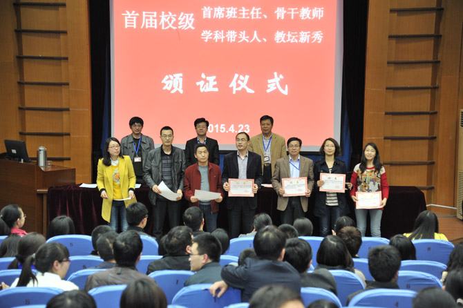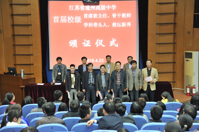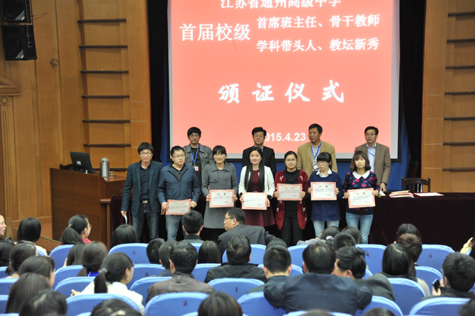 4月23日晚教职工大会,学校向张杰等29名教师颁发了校级专业荣誉证书,历经一个多月的通州中学首届校级首席班主任、学科带头人、骨干教师及教坛新秀评选,经过严格严谨的申报评比程序,结果揭晓。