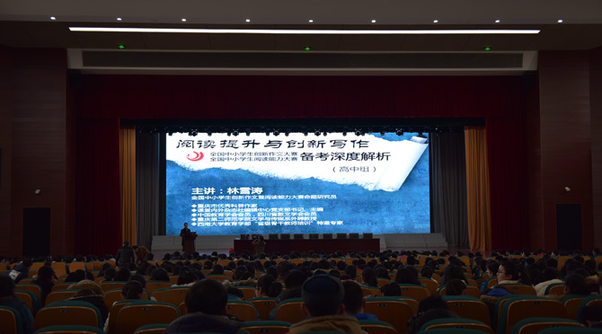 首场讲座以《阅读提升与创新写作》为主题,由重庆市优秀科普作家,《课堂内外》编辑中心党支部书记、主编林雪涛主讲。他对全国中小学生创新作文大赛的历届试题、命题思路以及备考方法进行了深度解析。学校高一年级全体学生和语文教师参加讲座。第二场讲座以《文学社团:生涯规划与自主招生》为主题,由《创新作文》主编、全国中小学生创新作文大赛副主任王劲主讲,学校文学社团成员、高二年级部分学生和语文老师参加了讲座。王劲老师从专家团队、国家课题、书刊出版、校园活动、服务体系等方面对全国中小学文学社团联盟进行了系统介绍,对同学们特别感兴趣的“全国中小学文学社团高峰论坛”和《课堂内外》文学潜质生特训营进行了重点讲解。