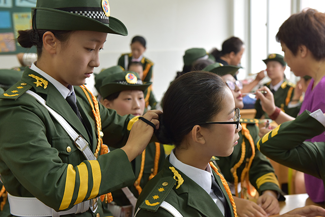我校高度重视本次活动,从2016级新生中挑选出了60名同学,进行专项训练,在两位军训教官的带领下,同学们不顾烈日酷暑,放弃休息休假,白天训练队列,晚上训练合唱,努力认真做好每一个细节。