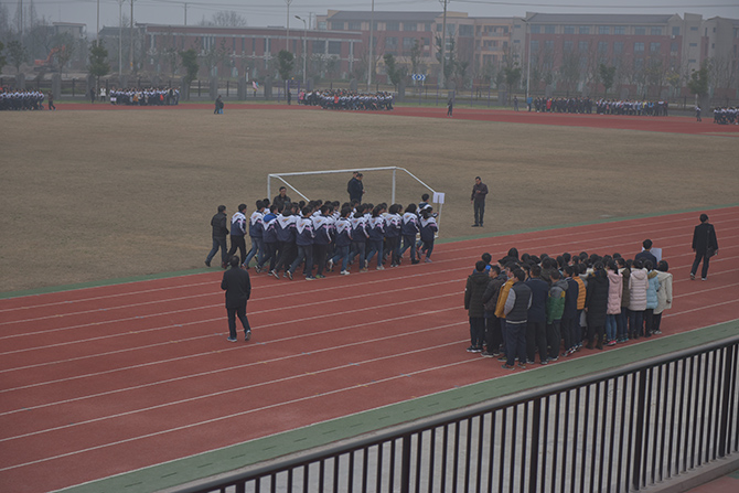 1月4日下午,我校一年一度的跑操比赛在学校体育组的认真组织和全体班主任的共同配合下成功举行。跑操比赛不仅是对课间跑操训练成果的检验,也是展示我校学生集体风采的绝好机会。