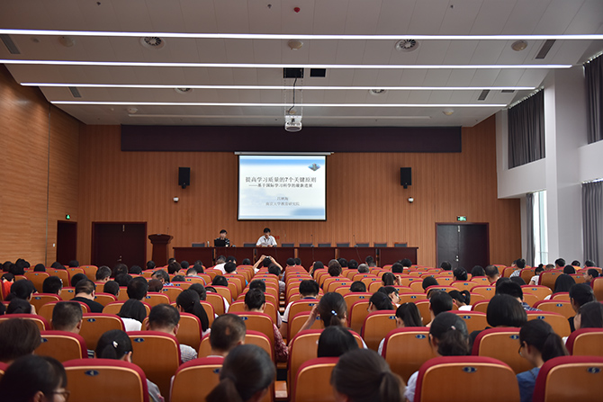8月16日下午,南京大学教育研究院吕林海教授到我校为全体教师作了一场题为“提高学习质量的7个关键原则”讲座,由此掀起教师暑期校本培训的高潮。