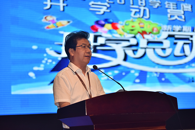 季仲平校长首先致辞,代表学校党委、校长室,向全体新生致以热烈的欢迎!他说:“作为新通高人,你们是荣誉的继承者也是开创者,是历史的延续更是历史的拔高,从今天起,你们的命运与通高命运相融相联!”他希望大家能记住初心,让优秀成为习惯,甘做学习的苦行者,主动拓展成长视野,勇于树立责任意识,共同铸就属于校我的荣誉历史!季校长的殷殷期望激起高一新生的共鸣。