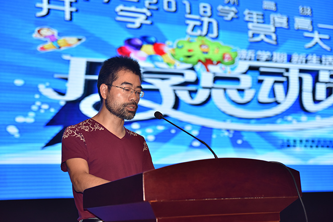 教师代表管宏斌老师在发言中表达了对大家跨进通高大门祝福,他告诉大家:在这里遇到的老师和同学将是每个人未来三年不可或缺的引路人和同伴。管老师对新生提出了三条建议:尽快适应新环境、新生活;学会做人;学会学习。