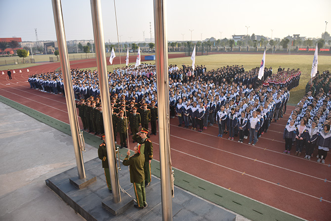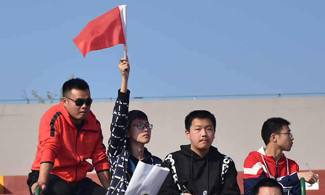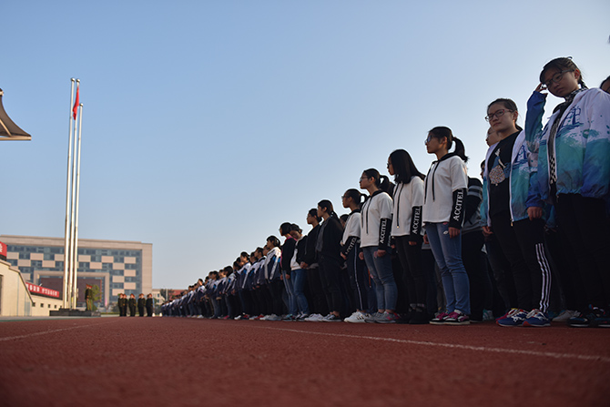 27日上午,伴随着激昂的运动员进行曲,各年级班级纵队身着整齐的服装、迈着整齐的步伐走向运动场。简短而隆重的入场式完毕后,各班代表上台领取旗杆,特色鲜明的班旗高高飘扬。随后,在嘹亮的国歌声中国旗徐徐升起。