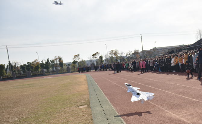 滑翔机、多旋翼飞机、编队战斗机……一架架各具特色的航模腾空飞行。随着时间的推移,表演项目的观赏性越来越高,战斗机特技飞行、线操纵空战飞机、双机编队飞行、遥控五机编队飞行,参与表演的航模数量越来越多,难度也越来越大!一些惊险刺激的表演项目,赢得同学的阵阵欢呼和掌声!