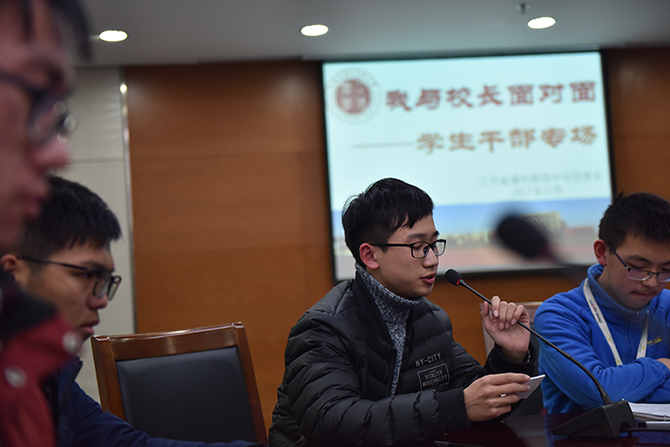 会议首先由各学生干部交流发言,畅谈自己对学生干部身份、模范示范作用的理解,并对学校学生干部工作提出建议。发言过程中,季仲平校长或随机点评或穿插回顾自己学生时代担任学生干部的情形。季校长智慧的观点、深情的回忆,赢得同学们阵阵掌声,整个“面对面交流”互动积极,氛围融洽。