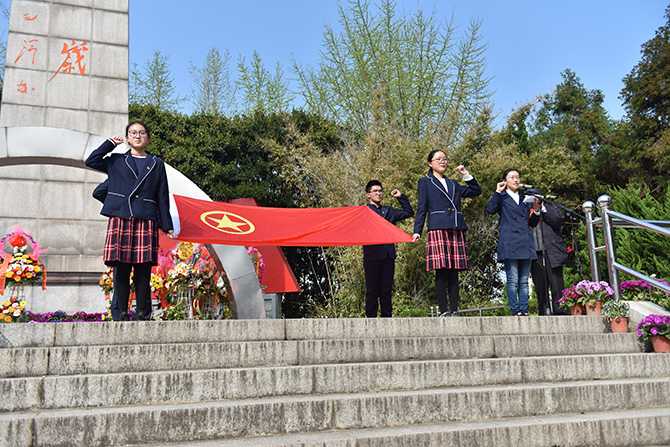 行程中,我们间隔安排了富有意义的城市观览、历史介绍、缅怀先烈等活动。在通灵桥、南山湖、南山寺、文博中心、体育活动中心这些驻足点,戴着小红帽的班干部和志愿者,拿着小喇叭,认真讲解地方历史。党员老师不时补充,热心为同学们介绍通州文化,各班小记者则用自己的镜头记录下这些精彩时刻,大家对家乡的自豪感油然而现!在烈士陵园,大家稍作休整便开始了祭扫活动。缅怀先烈,让我们在现实中感受英雄之伟大、事业之维艰,自觉思考肩上之责任,主动将青春梦想与民族未来融合相生!