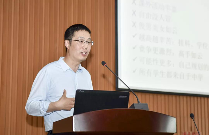 唐少强博士现为北京大学力学与工程科学系教授、应用物理与技术研究中心副主任、高能量密度物理数值模拟教育部重点实验室主任。讲座中,唐教授就“为什么要上大学”“大学的生活与学习”“大学与专业”“大学感想”四个主题与同学们分享了充实、精彩、拼搏的大学生活,向同学们生动展现了名校的真实风貌。唐教授娓娓道来,充满智慧,不乏幽默,让在场的通高学子对未来的大学学习有了新目标、新规划、新自信。唐教授用爱因斯坦的经典方程E=mc2,将大学精辟地总结为“Education”“Motivation”“Comprehensive background”以及“Concentration”,同学们在会心一笑的同时对大学有了更深刻的理解。讲座结束后,唐教授热心回答同学们的提问,详细解答大家的疑惑,帮助大家对专业选择、入学准备等有了进一步了解。