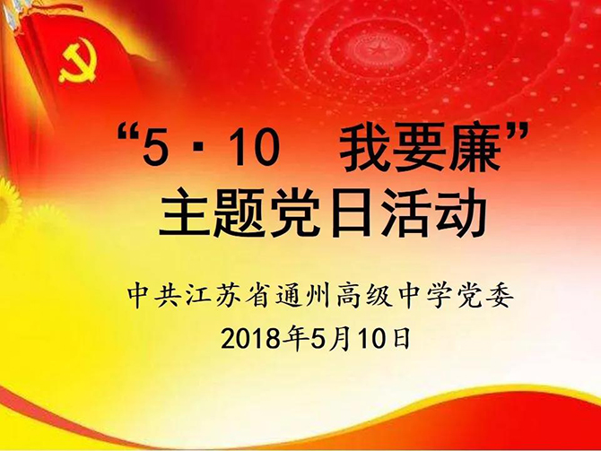 党的“十九大”进一步对全面从严治党作出部署,为了更好地加强干部队伍建设,营造良好政治生态,5月10日上午,我校开展了“5·10 我要廉”主题党日活动。活动由学校党委副书记许斌主持,校长季仲平,副校长秦志强、张圣兵,纪委书记翟新民以及全体中层干部参加了此次活动。