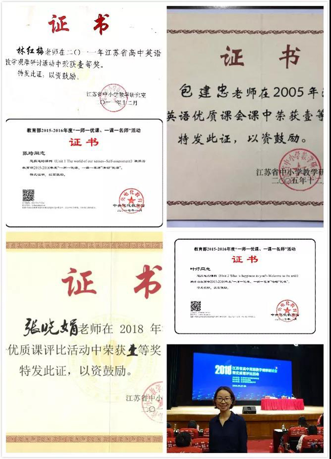在德艺双馨的资深教师引领下,英语组成员互帮互助,互学互赶,共同提高,近年来先后有4人获得江苏省英语优秀课评比一等奖,数人获得“一师一优课”部级优课奖,20多人获南通市、通州区优秀课评比一等奖;30多人获南通市先进教育工作者、区市级优秀班主任、区高三优秀教师、区高三十佳教师、通州好教师、通州好青年等荣誉称号。年轻教师积极主持或参与省市级规划课题研究,聚焦科研提升自我,每年人均三篇以上专业论文发表于省级期刊,多人次在论文比赛中获奖。