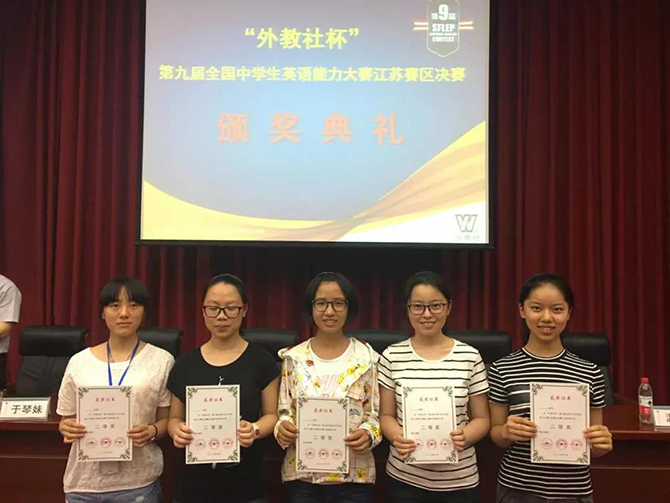 以课程基地为依托,教研组积极为学生搭建拓展课外语言运用能力的平台。学校每年开展一次校园英语演讲比赛,在“外教社杯”全国中学生英语能力大赛、江苏省“领航杯”口语演讲大赛、中央电视台“希望之星”英语风采大赛、全国中学生英语能力大赛、全国英语创新作文比赛等赛事中,均取得了优异成绩。2017年,高楚珊同学获得了NEPCS竞赛全国总冠军,学校获得NEPCS优秀组织奖。2017年,英语话剧《雷雨》在公众平台直播,现场收视率达到了20万人次,受到社会各界高度评价。这些活动既让学生感受到“学以致用”的语言应用境界,又培养了他们用世界语言来讲述自己故事的民族意识。