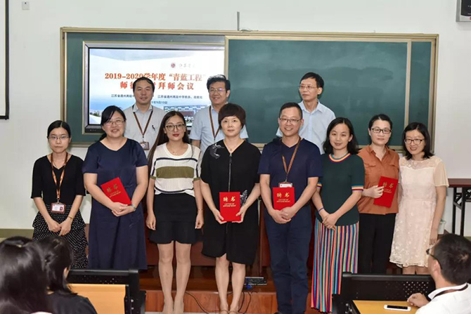 教务处赵建华主任首先介绍并解读了我校“青蓝工程”活动方案,宣读了师徒结对名单,见证了郑重的结对拜师仪式。季仲平校长充分肯定了我校优秀教师近年来在教育教学、教育科研等方面取得的成绩,并为各位师父颁发了聘书,随后学校领导与结对师徒合影留念。
