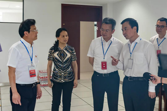 徐新民副市长先后到考场、考务室、保密室、监控室、广播室、隔离备用考场、食堂、宿舍等场所详细了解临考准备工作。季仲平校长向徐新民副市长汇报了考点各项考务准备和突发应急预案。他表示,高考不仅是学生在答卷,也是我们在答卷,不仅是学生的战斗,也是我们的战斗;无论是作为高考学校还是考点学校,我们一定会以战时状态、战时标准、战时举措,将各项工作做得更深更细更扎实,确保实现健康、公平、平稳、温馨、诚信的高考目标。