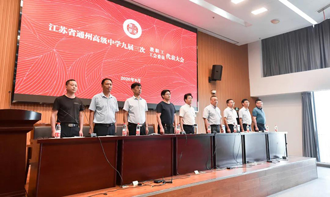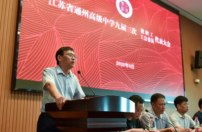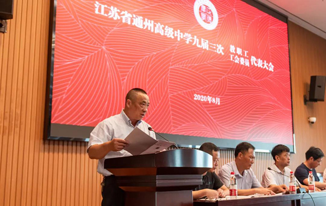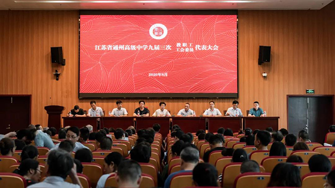 第一次全体会议在庄严的国歌声中拉开序幕,葛祖华老师主持,曹耀忠主席致开幕词。曹主席对全体教职工一学年来所取得的成绩表示祝贺,对全体员工在抗击疫情期间所做出的努力表示肯定,明确了本次大会的重大意义,对学校未来发展表达了期待,本次大会,确立了“优化考评机制,保障教育质量,为建成高品质高中而不懈奋斗”的主题,以及“如何建立一套公正完善的绩效考评机制,发挥绩效考评的正面导向作用”“如何顺应新高考制度的全面实施,切实保障和提升教学质量”“如何迎接高品质高中建设”三项议题。