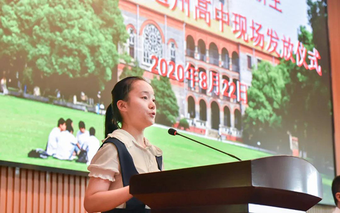 新生代表高三(5)班陈杜璠发言,表达了对母校的感激,表示将牢记通高“正德厚学”的殷殷叮嘱,决心在校史悠久、师资雄厚的苏大耕耘未来,在青春与梦想的承载之地上践行理想。