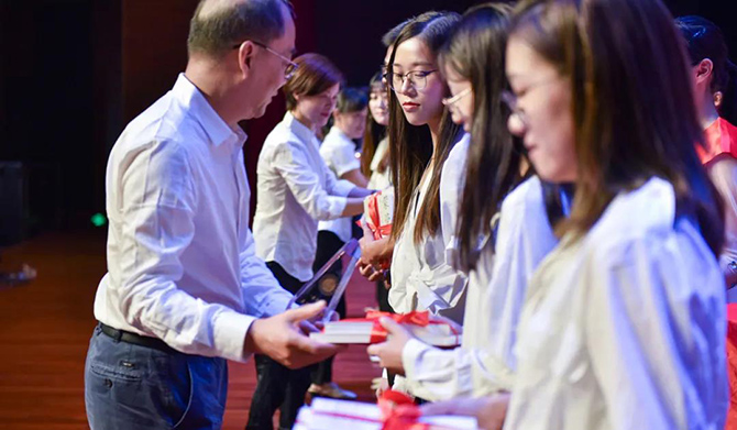 整个庆祝表彰活动内容丰富、形式多样,精彩的歌曲表演、动人的钢琴独奏、激情的集体合唱,表达了学生们对老师的感恩与祝福。活动现场颁发了年度贡献奖团体奖、年度贡献奖个人奖、“十佳”优秀教师奖。“桐花万里丹山路,雏凤清于老凤声”,学校同时为近年退休的教职工举行了隆重的退休仪式,为新教师举行了入职仪式,退休教职工为每一位新入职教师赠送书籍。
