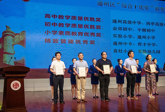 张圣兵副校长、于容峻老师荣获南通市优秀教育工作者称号,张春明、成永新、朱丽强、袁源、朱烩、葛犀、马进、刘先锋、张晓娟、王新星、张艳等老师获得区级各类表彰。同时,学校高三毕业班管理团队被授予通州区“十佳四有好老师团队”称号,学校获通州区“高中教学质量优胜奖”,被评为南通市教育系统先进集体。