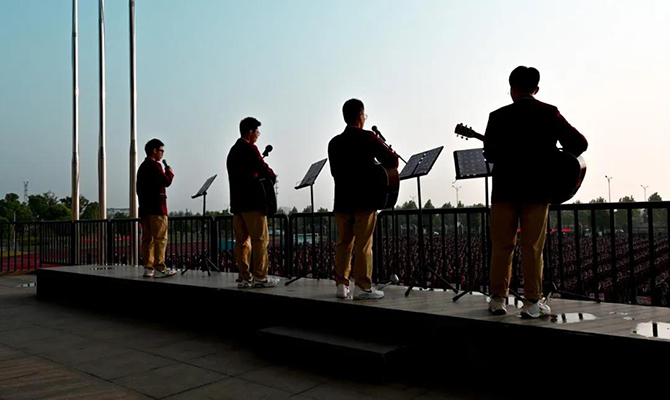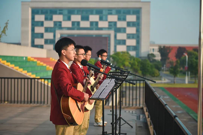 学生代表高二(6)班孙畅同学发言,她口语流利,激情昂扬,展现了通高青年才俊的精神风貌。高三(8)班陈唯一同学的歌曲Dream it possible和高二(5)班张典等同学的吉他弹唱Counting Star颇有巨星风范,引得掌声雷动。